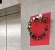 千代田区立番町幼稚園うめ組さんの子どもたち代表が、松ぼっくりやどんぐりを使ったツリー・リースを、当会に届けてくださいました。さっそく館内に飾りました。