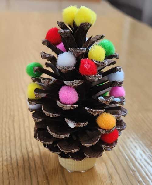 千代田区立番町幼稚園うめ組さんの子どもたち代表が、松ぼっくりやどんぐりを使ったツリー・リースを、当会に届けてくださいました。さっそく館内に飾りました。